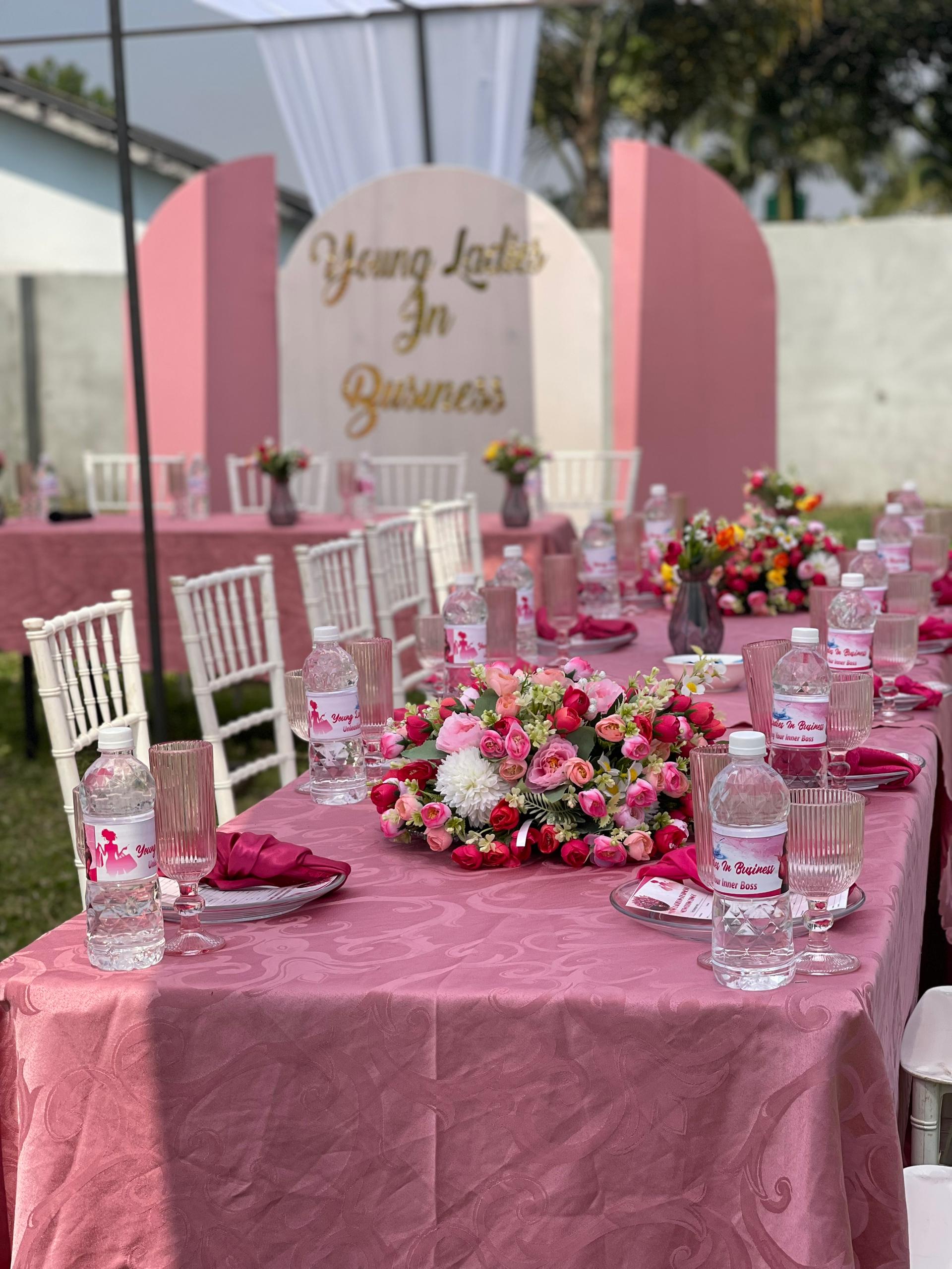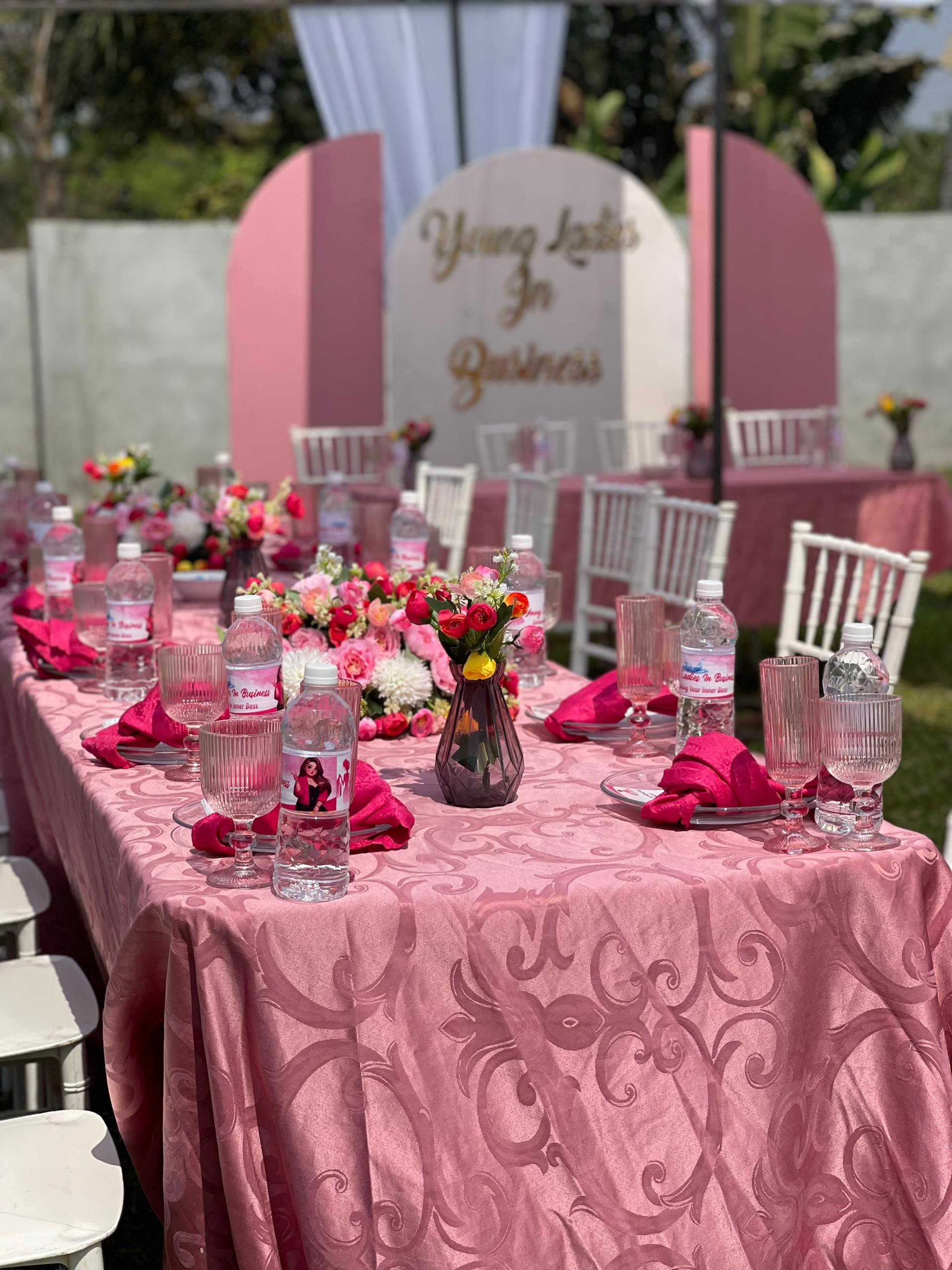 We had the privilege of hosting and decorating the inspiring Young Ladies in Business event, where ambitious young women came together to learn and network with seasoned business experts. Our décor featured a sophisticated pink theme that symbolized elegance, empowerment, and femininity. The setup included: Chic stage and backdrop styling for speakers Pink floral arrangements and balloon accents Elegant table settings tailored for networking sessions A welcoming photo booth corner for memorable captures The atmosphere beautifully combined professionalism and charm, creating the perfect environment for learning, connection, and celebrating women in business.